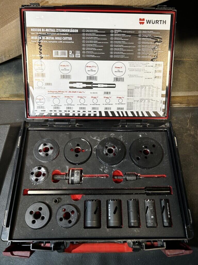 Bonjour je les en location ce Coffret de Scie Cloche Würth, comme neuf, idéal placo et bois, peut convenir pour du métal tendre type alu ou cuivre.
