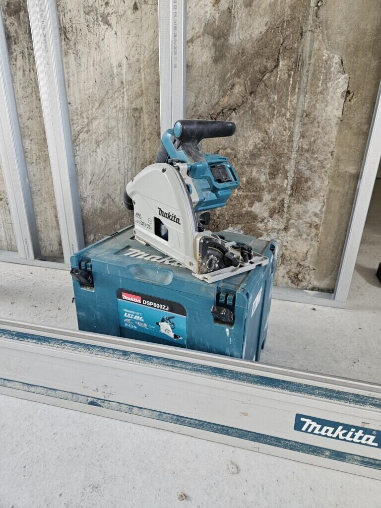 scie plongeante sur batterie, disque neuf avec sa regle 1,50m