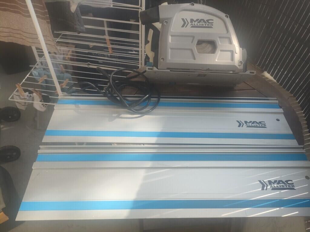 À louer scie plongeante Mac Allister 1200 W avec lame bois et rails de guidage (1,4 m + rallonge).