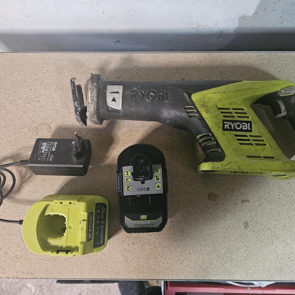 Scie sabre 18 V ONE+ avec une batterie et un chargeur.