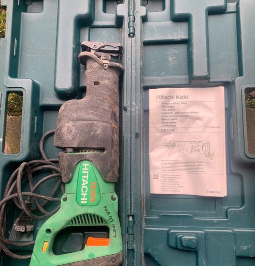 Scie sabre Hitachi W. Outil idéal pour la découpe d'ouvertures dans les cloisons (placo, carreaux de plâtre, bois) ou decoupe de chevrons ou morceaux de bois.