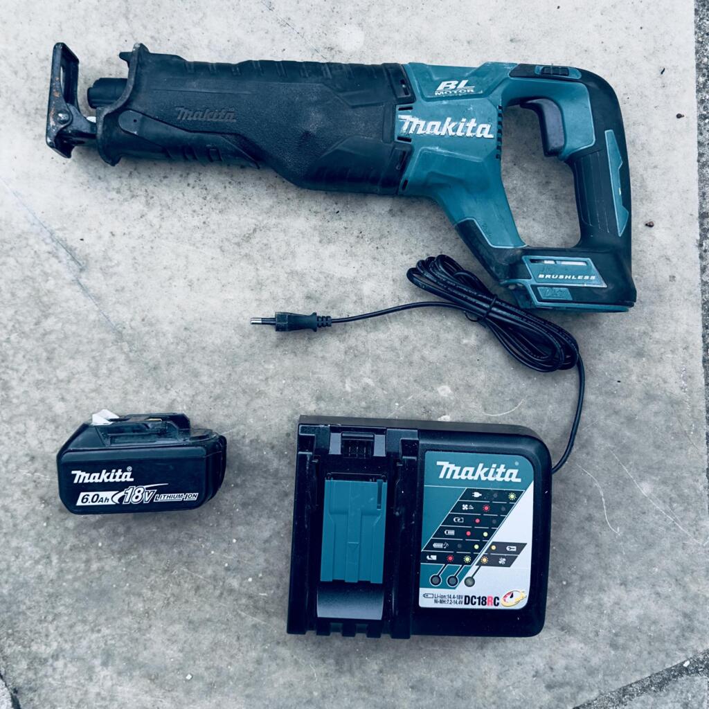 Scie sabre Makita DJR Brushless 18V LXT, idéale pour la découpe de bois, métal, PVC, palettes, tubes et démontage rapide.