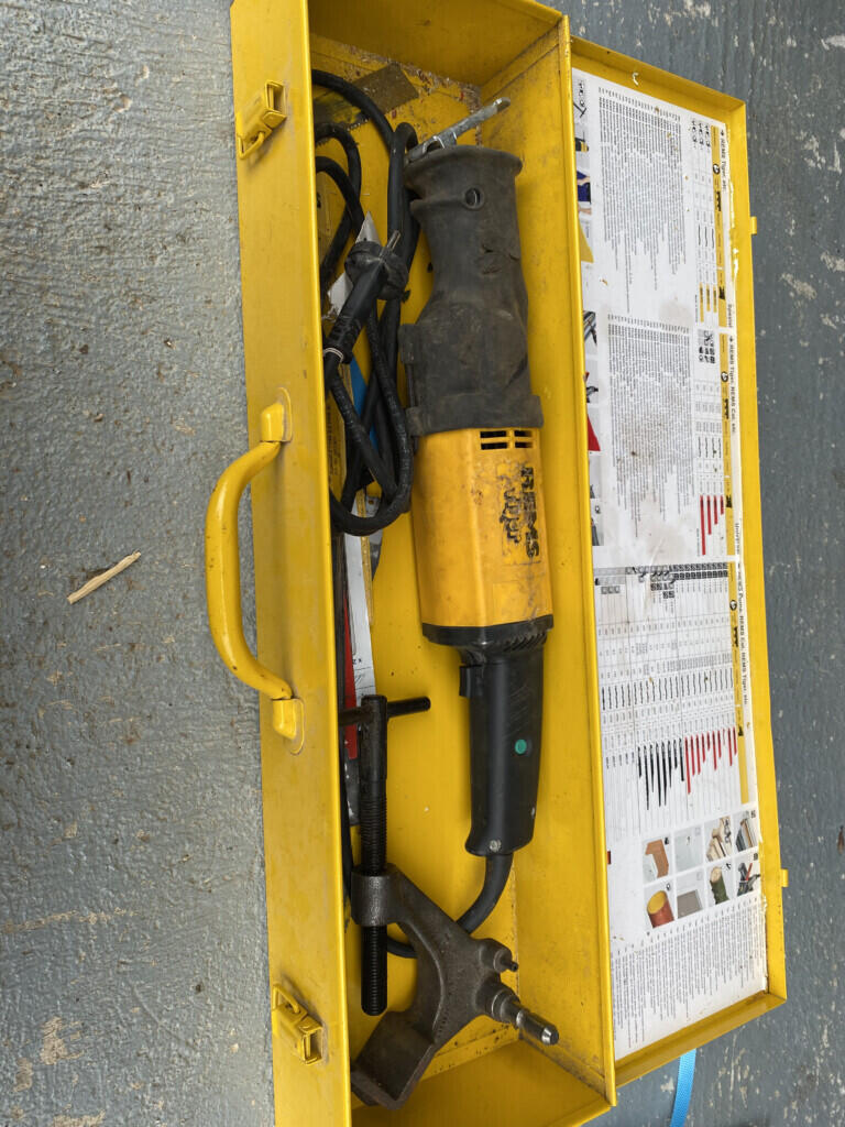 Scie sabre électrique pour tubes, pour sciage à angle droit avec guide, sans effort, rapide, et pour sciage à main levée jusqu'à 6", 250 mm.