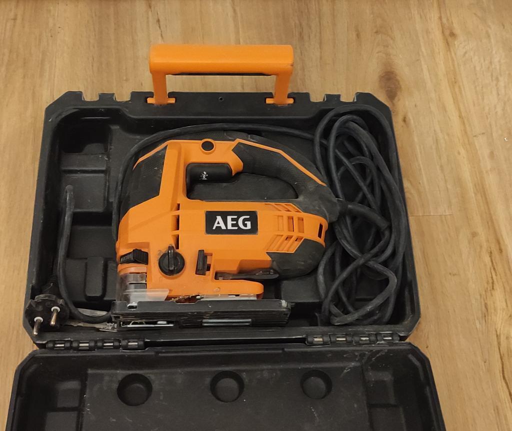 Scie sauteuse électrique avec divers lampes de coupe. Parfait état de fonctionnement, très peu servi