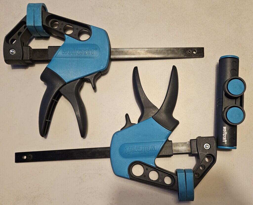 Lot de 2 serre joints « 1 main » avec diverses fonctionnalités très pratiques : serrage et desserrage rapide, possibilité de détacher l’extrémité pour passer dans des endroits exigus, encoche pour serrage de tubes ou autres.