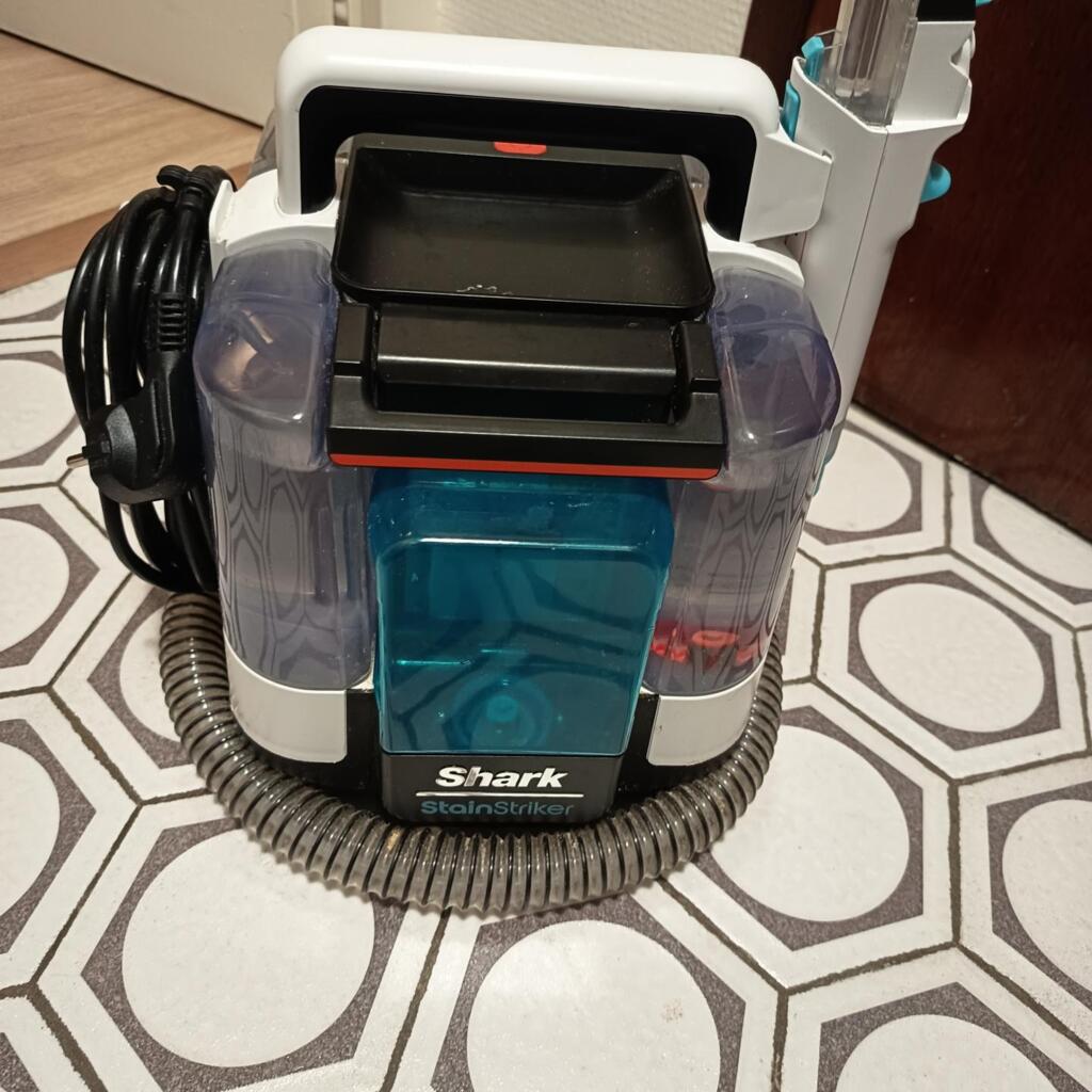 Shampouineuse de la marque Shark, louée avec les produits Shark, peu encombrante et légère.