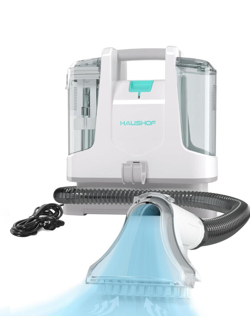 Compacte et légère (3.4kg), équipée d’un moteur puissant de 400 W et d’un double réservoir, la shampouineuse nettoie en profondeur tapis, canapés, sièges de voiture et coussins d’animaux.