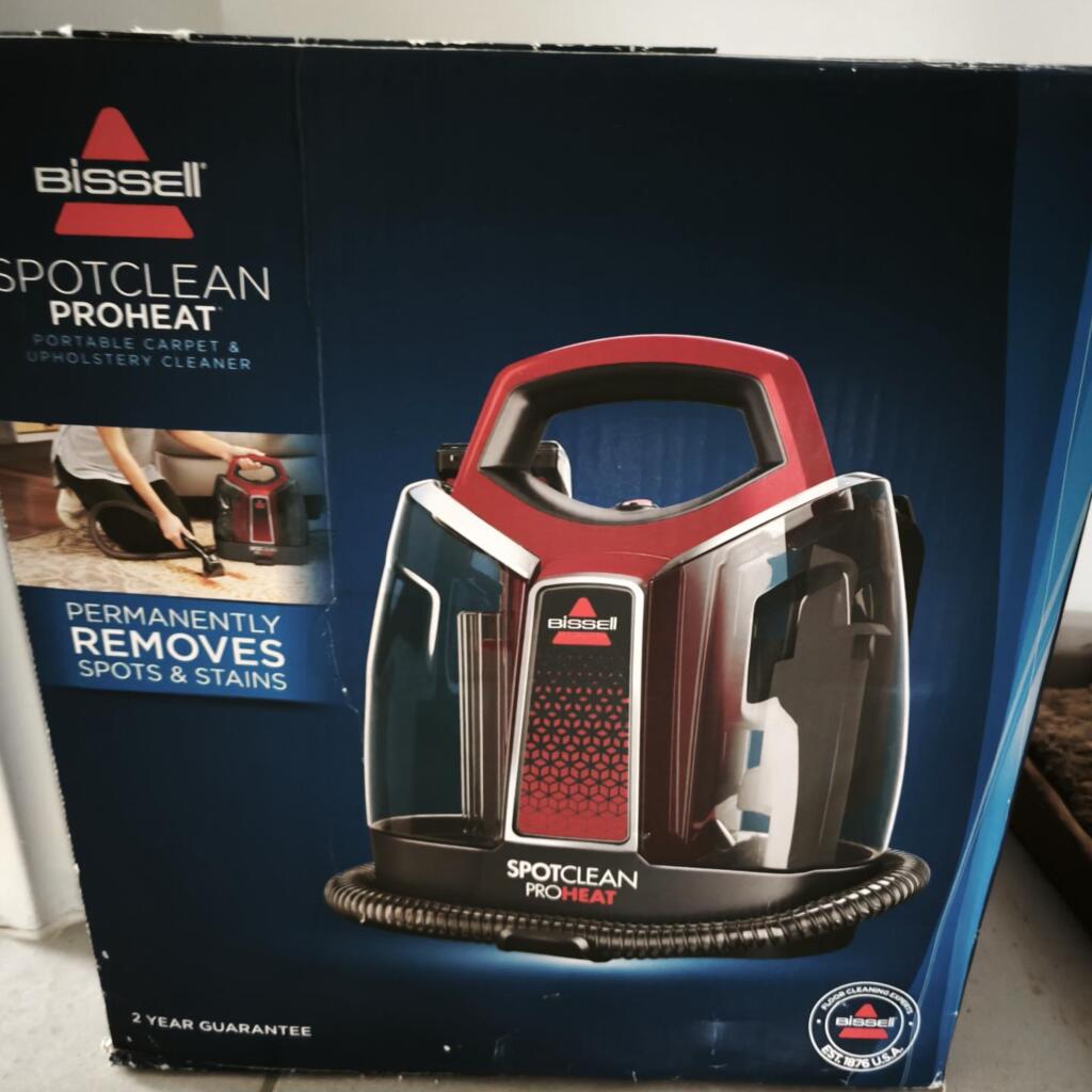 Shampouineuse bissel en très bon état, les produits sont fournis pour créer la solution de nettoyage. Permet d’injecter de l’eau et l’aspirer immédiatement, aspirant ainsi la saleté incrustée dans les tissus. Laisse le tissu légèrement humide, mais qui sèche totalement dans les 24h!