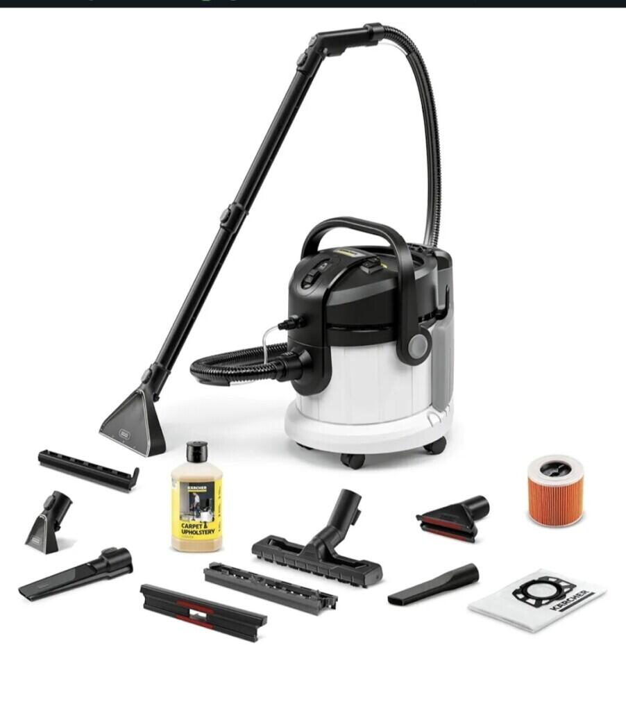 Livraison : SE 4 Plus de Kärcher, suceur sol avec embout pour sol dur, suceurs de lavage pour meubles & fentes, suceur fauteuils, filtre à cartouche, nettoyant moquettes & sac filtrant en non-tissé