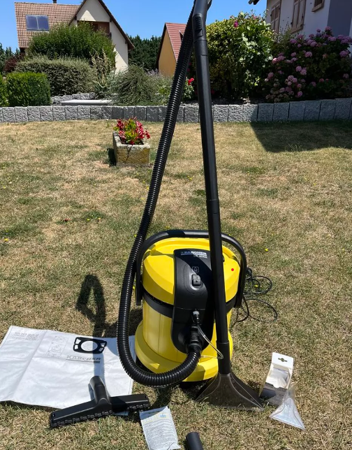 Je vous propose en LOCATION ma Shampouineuse nettoyant Kärcher 3 en 1 injecteur, extracteur et souffleur. C’est une véritable machine de guerre contre les taches et la saleté, capable de redonner vie à vos tissus et surfaces !