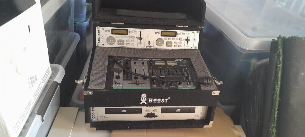 Sono complète avec table de mixage amplis pro 4 enceintes pro+ portique avec jeux de lumières.