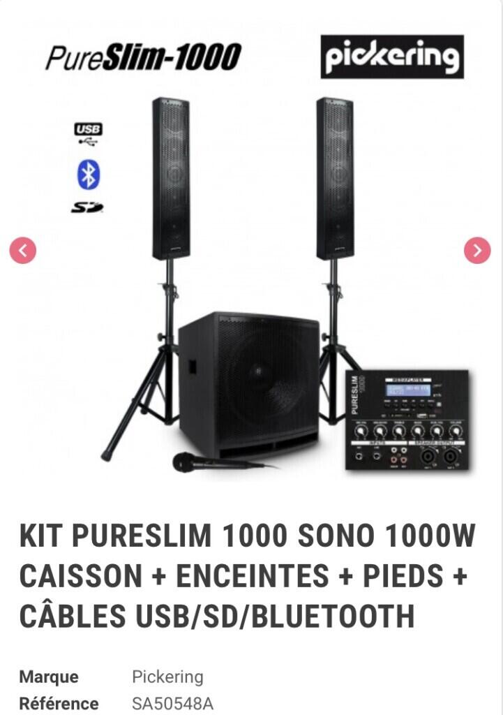 Sono fonctionnant avec ou sans table de mixage, réglage intégré, Bluetooth, USB et Carte SD dotée d’une entrée micro et de 2 baffes. Idéale pour sonoriser vos soirées. Voir photo.