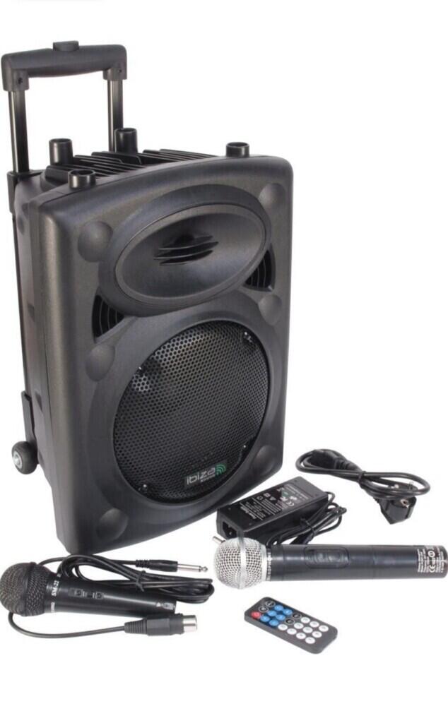 Sono ibiza autonome avec 2 micros convient sans problème pour une salle de 130m2 et 70 personnes