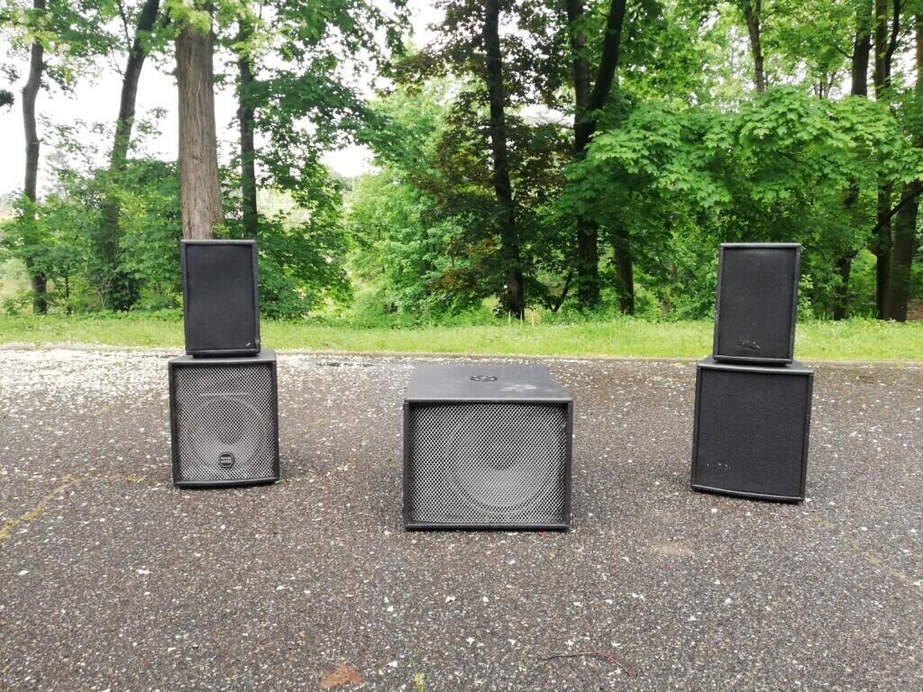 2 tetes 150w+ 2 tetes 300w+ 1 caisson 38 cm 600w+ 1 table de mixage berhinger 4 voies+ cablage complet.