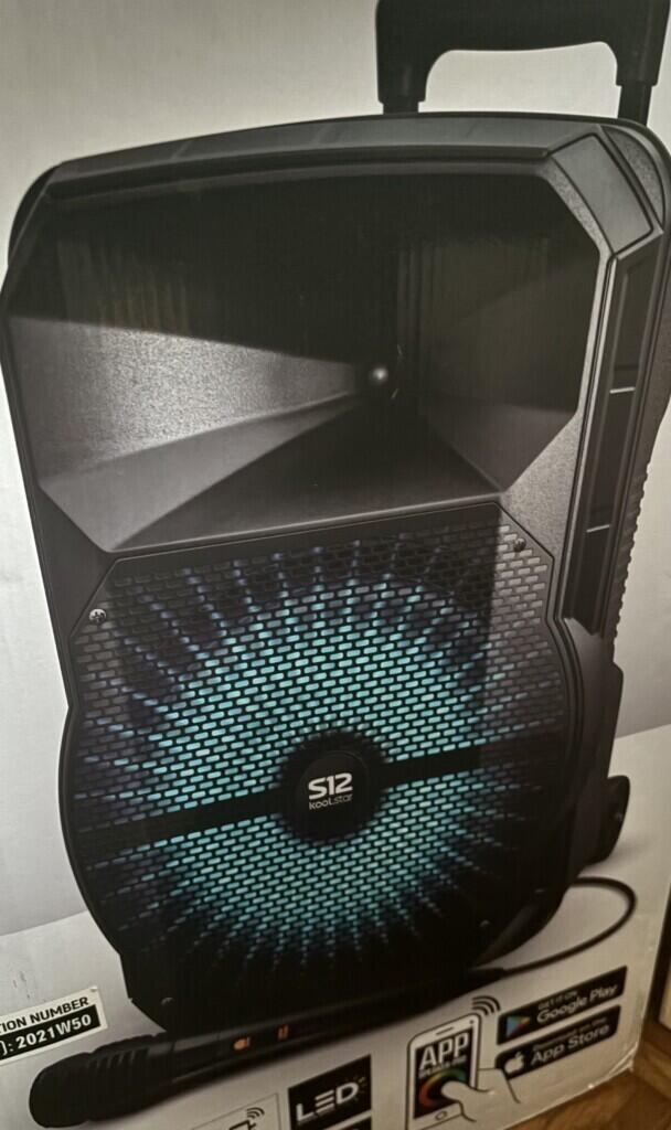 Enceinte Sono Portable » – 600W Streaming Audio Bluetooth, USB/SD/AUX, Micro Filaire, Eclairage LED, micro, Facile à Transporter. L’entrée guitare vous permet de brancher votre instrument, possibilité d’en louer 2 1200W au total.