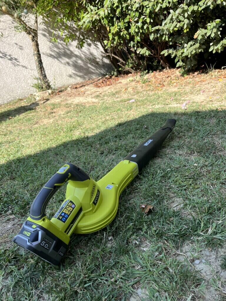 Souffleur à feuilles ryobi ONE+ sur batterie fourni avec deux batteries lors de la location.