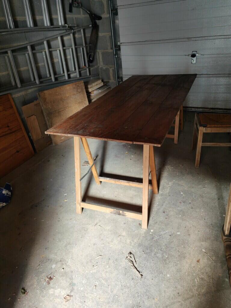 Plateau bois fabrication maison,avec 2 tréteaux bois