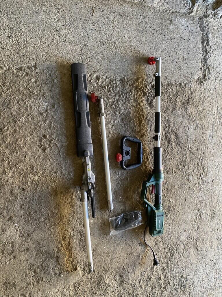 Il est fournie avec une sangle, des lunettes de protection ainsi qu’un casque anti-bruit