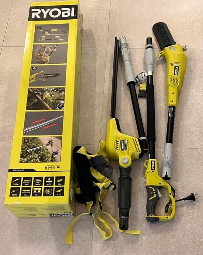 Taille haie Rioby en excellent état. Servi 1 fois pour une taille estivale. Très pratique et maniable pour accéder à des tailles en hauteur sans effort. Possibilité d’avoir la mini tronçonneuse de découpe avec.