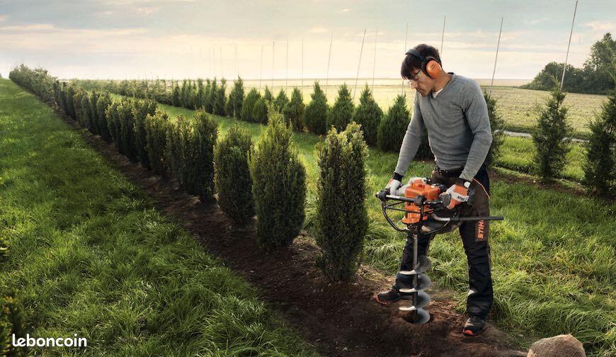 Tarière Stihl avec foret trou 13/15 cm + carburant pour plantation gros piquets,vigne,oliviers.Peut faire des trous de 2 mètresL X2largeur X2profondeur