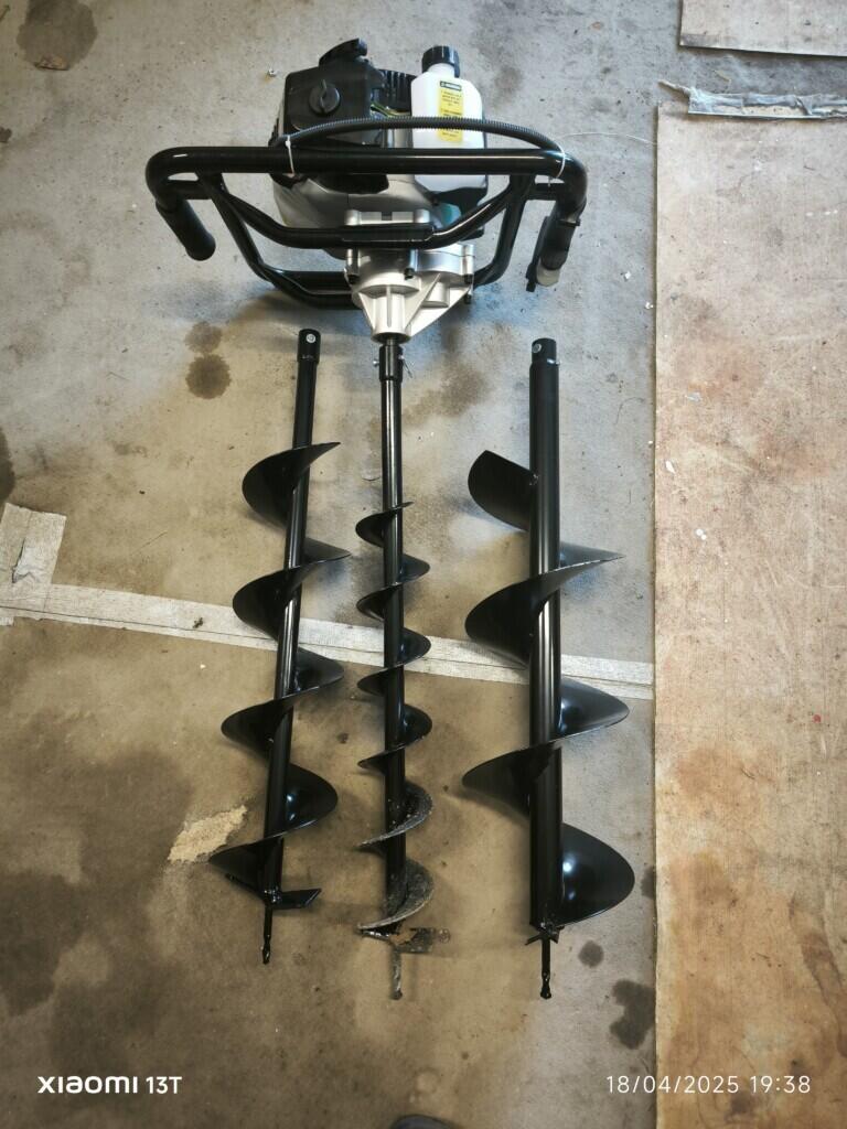 Tarière thermique équipé de 3 mèches de 100/150/200 mm.