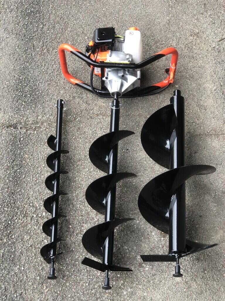 Tarière thermique récente, fiable et qui démarre facilement pour réaliser vos clôtures, claustras, plots béton terrasse, plantation d’arbustes, piquets, poteaux…