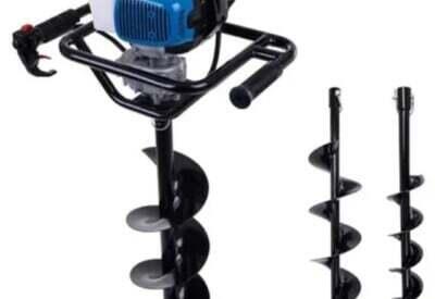 Destinée au forage de trous pour la plantation d'arbres et arbustes, cette tarière-brouette autonome thermique convient aussi parfaitement pour la pose de poteaux de clôture ou de pieux.
