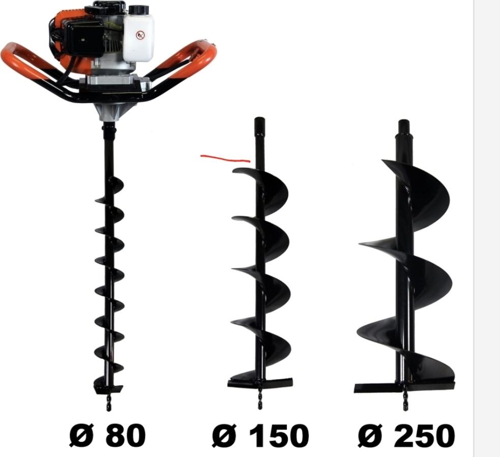 Tarière thermique puissante. 3 helices de diamètres de trou fournis