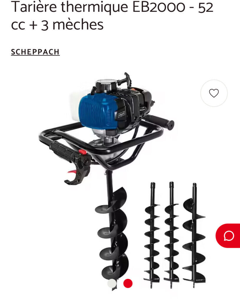 La tarière est livrée avec trois tarières interchangeables de diamètres différents : 100 mm, 150 mm, et 200 mm, pour une flexibilité maximale dans vos projets