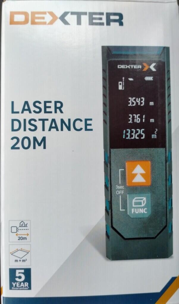 Télémètre laser 20 m Dexter. Distances et surfaces. Avec la notice.
