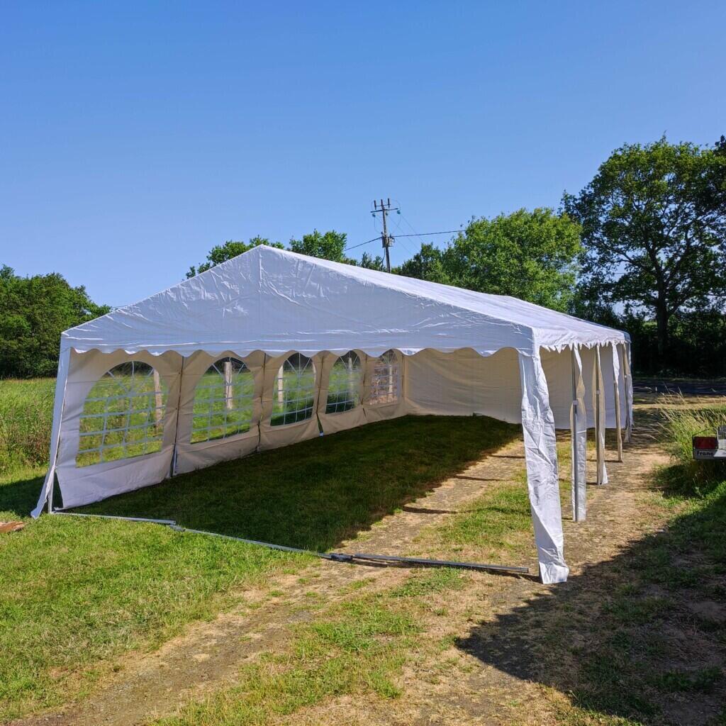 Tente de réception, 10×5 m. Livré monté et démonté avec de l’aide dans un rayon de 30km.