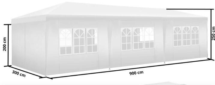 – Tente : L 900 × l 300 × H latérale 200cm / 8 pieds stabilisants
