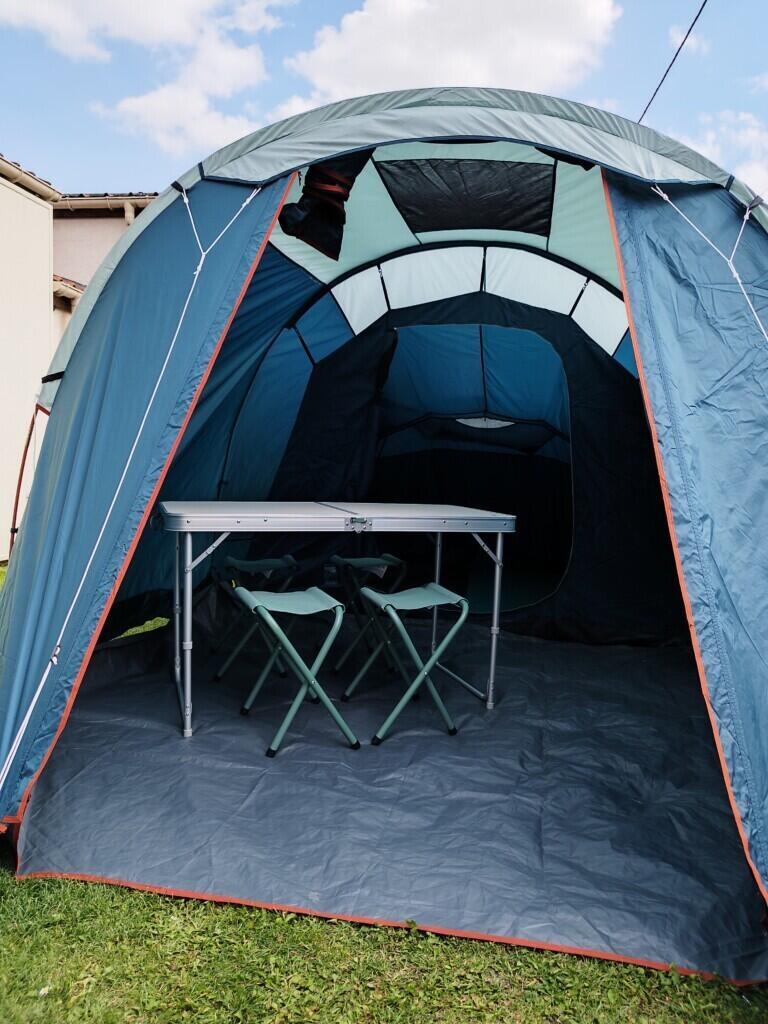 je propose à la location cette tente décathlon neuve de 4 personnes avec la table de camping et les tabourets. Il est possible de louer le réchaud gaz ainsi qu'un matelas gonflable 2 personnes en supplément.
