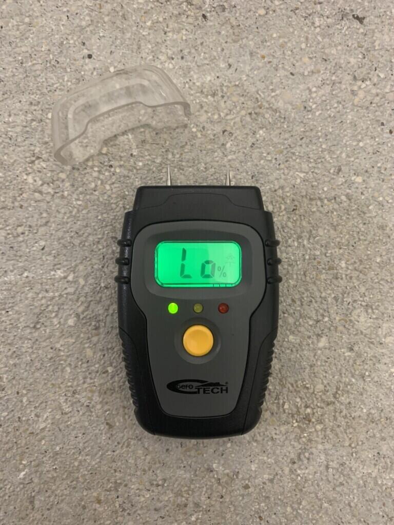Testeur d’humidité, permettant de vérifier l’état d’une dalle, d’un parquet, d’une poutre ou de plinthes. Affichage en %, appareil neuf.