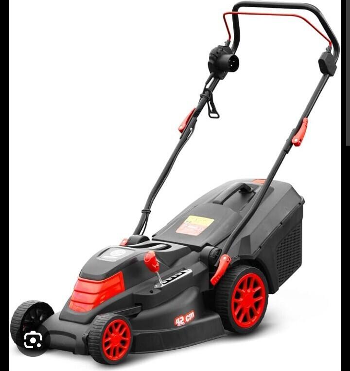 Tondeuse à gazon électrique avec son bac à gazon ,3 niveau de hauteur,prévoir une rallonge pour faire des grandes distances car le câble ne fait que 1 m et demi.