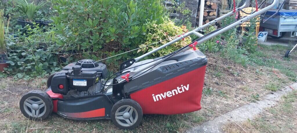 Loue tondeuse thermique, avec bac de ramassage. Convient pour petit jardin, jusqu'à 1000m.