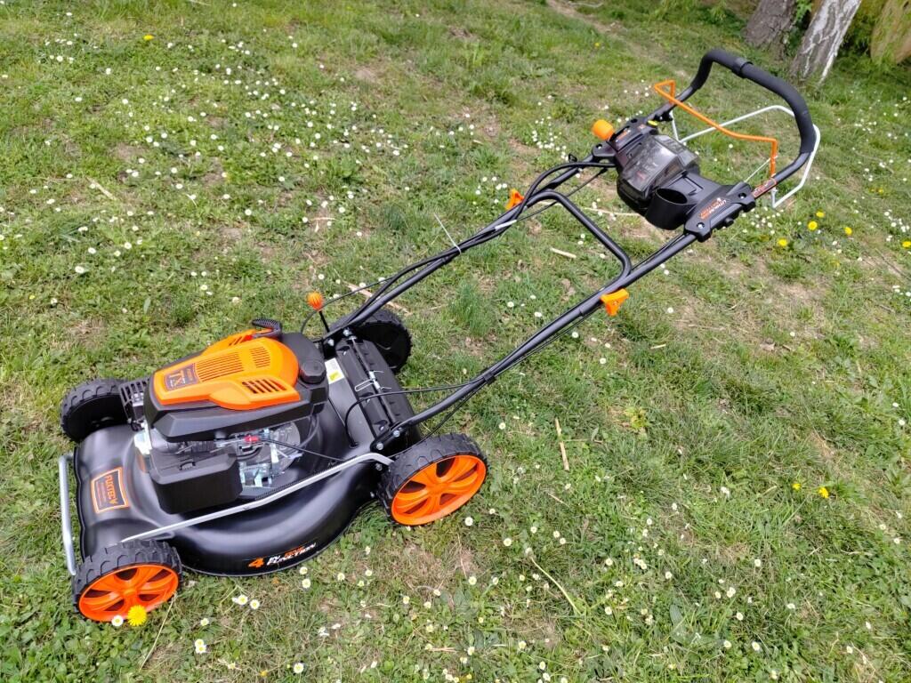 ✔ Tondeuse autotractée avec ou sans bac de ramassage. Démarrage électrique et réglage de vitesse de traction