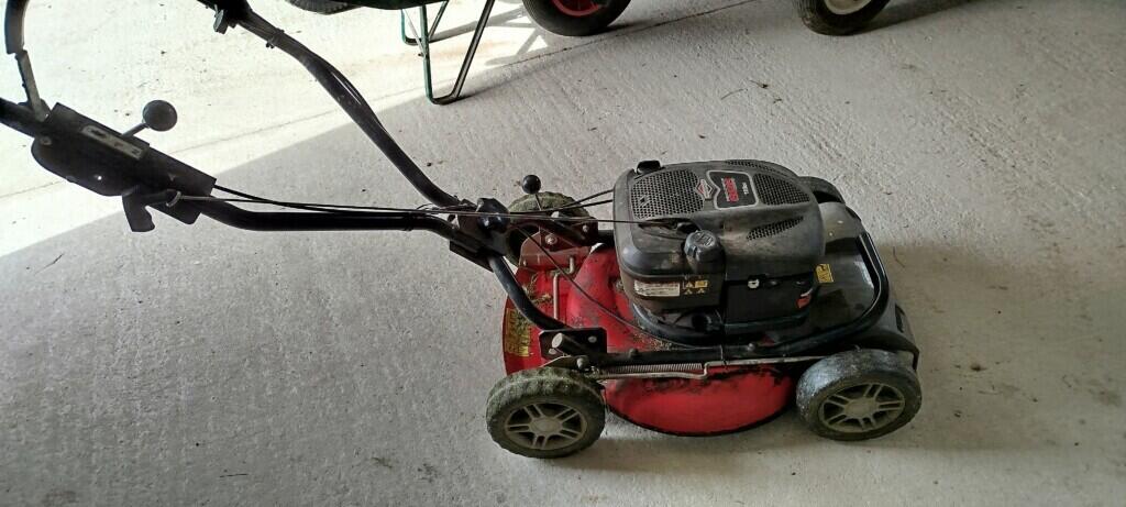 Tondeuse tractée qui a de l'âge mais très robuste et qui fonctionne au quart de tour.