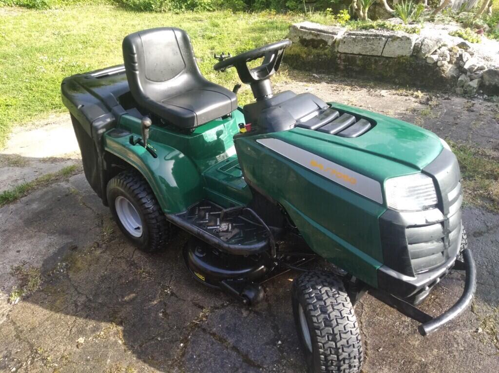 A louer tracteur tondeuse à éjection arrière avec son bac de ramassage.