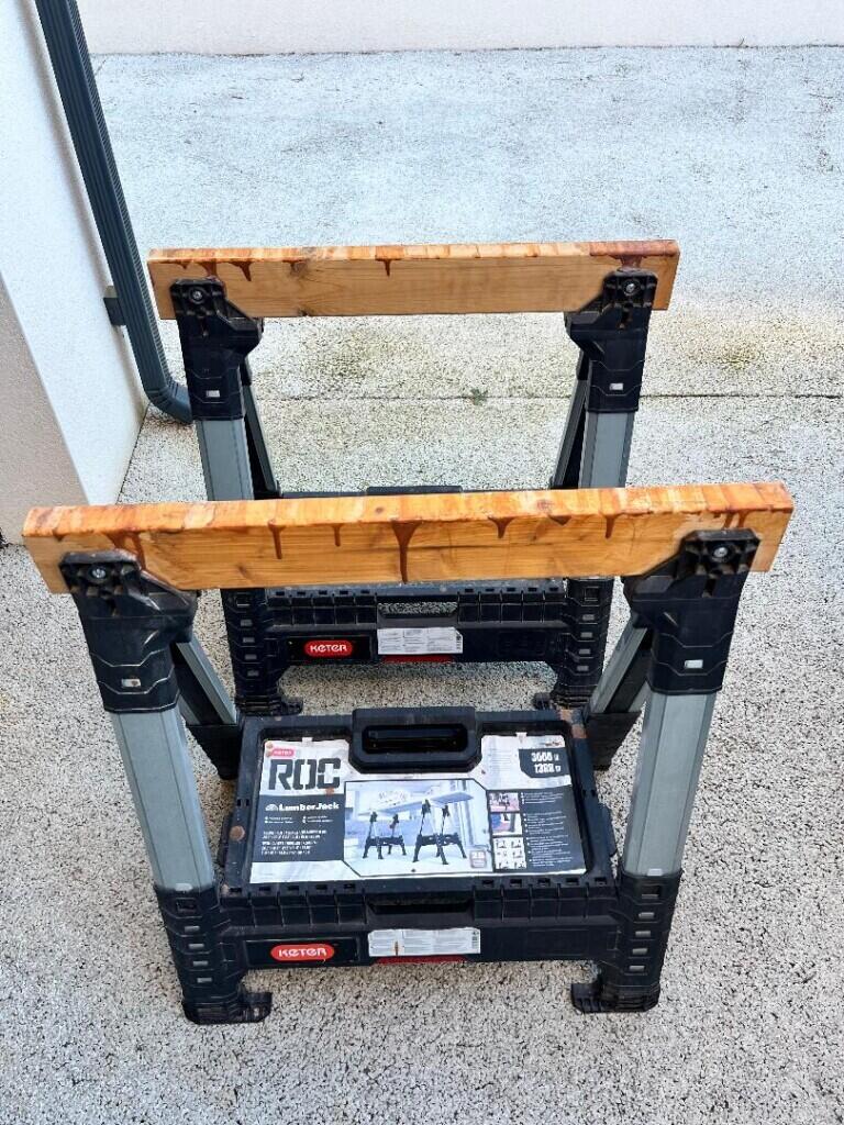 Particulier loue 2 super trétaux Modulable en hauteur et tres stable de la marque KETER