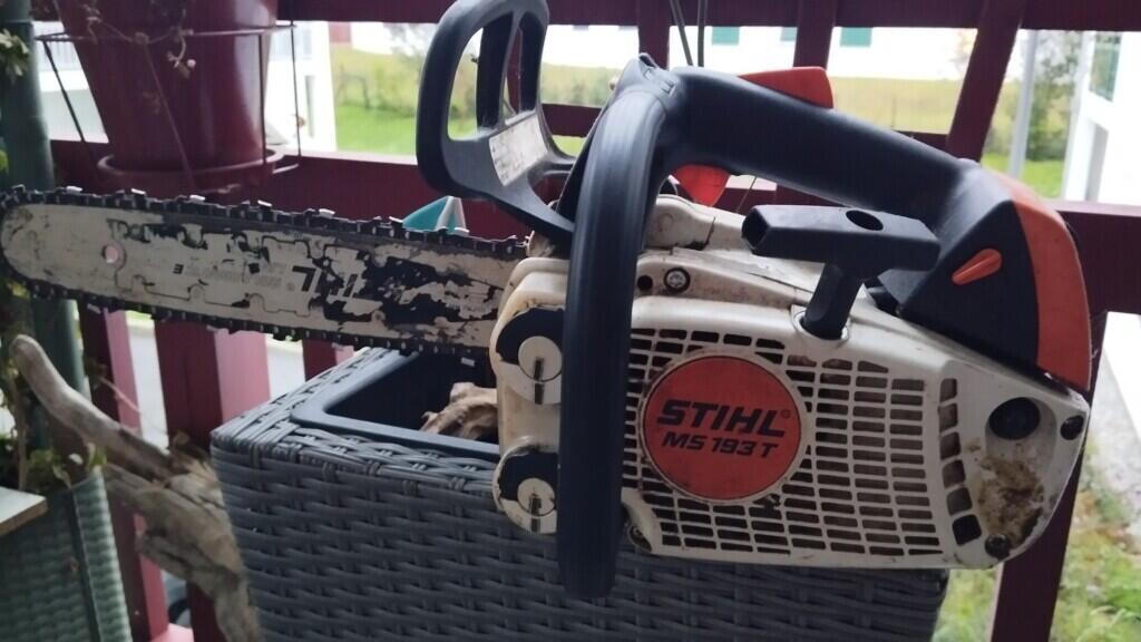 Tronçonneuse moteur 2Temps. Fonctionne avec du mélange. Prêt avec plein d'huile de chaîne et mélange.
