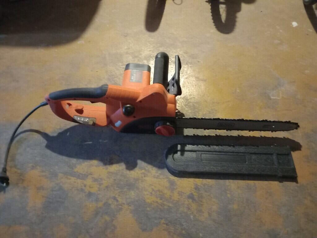 Tronçonneuse black et decker. Moteur de 2000W et 40 cm de guide. Frein de chaîne en 0,15 seconde à la garde et à la gâchette pour une sécurité intégrale. Graissage auto.
