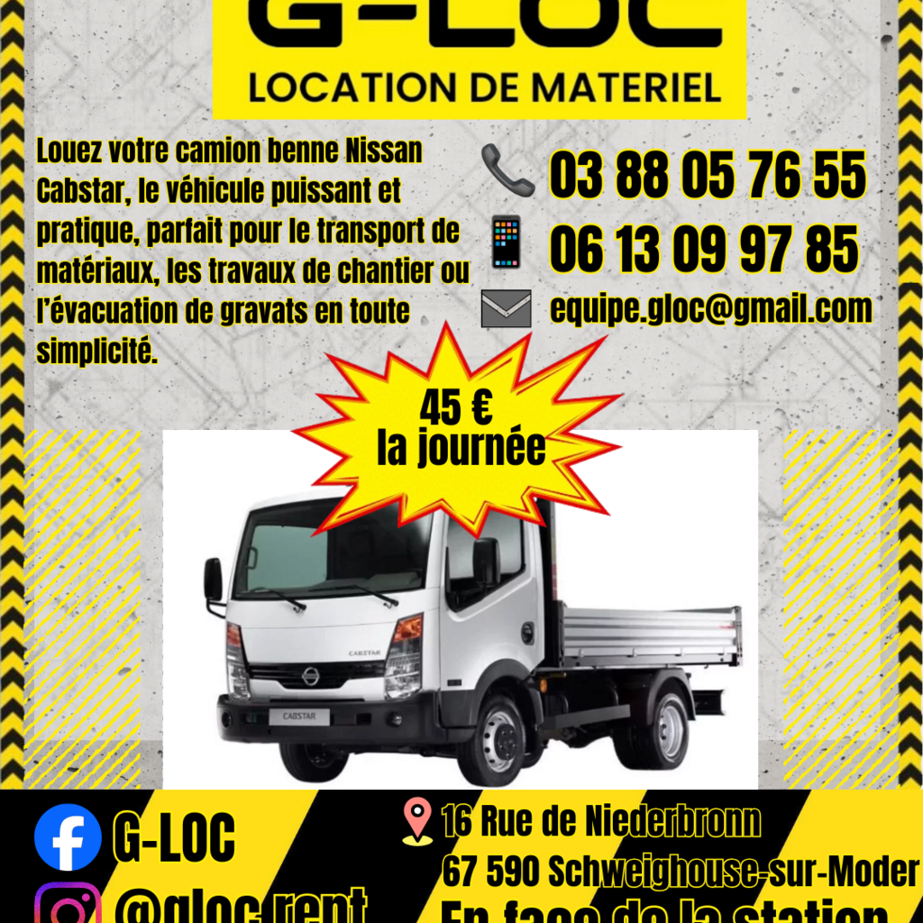 🔧 G-LOC, votre partenaire professionnel pour la location de véhicules utilitaires et matériels de chantier fiables et performants.