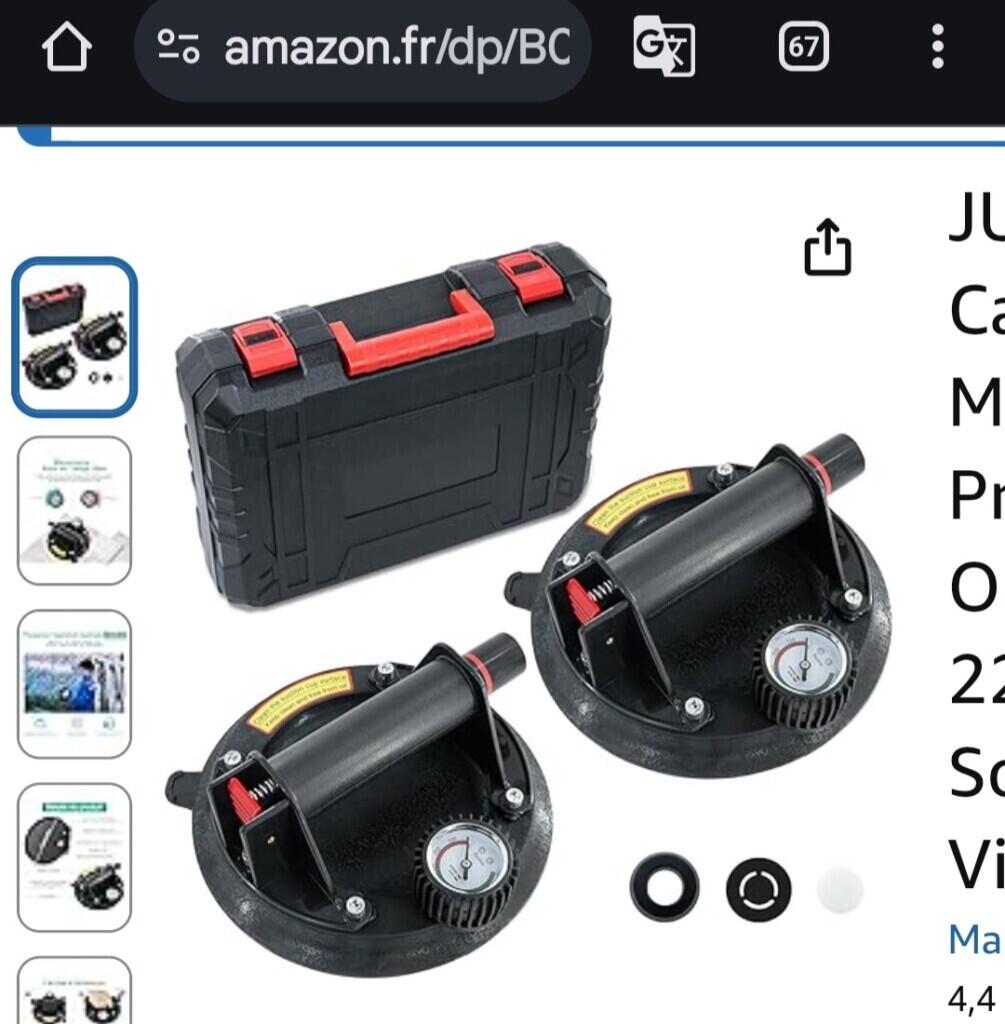 JUYLTOOL 2 x Ventouses Carrelage avec Manomètre,Ventouse Vitre Professionnelle avec Boîte à Outils Portable,Charge Maximale 220KG,Ventouses en Verre Pour Soulever de Vitre,Carrelage,Meubles