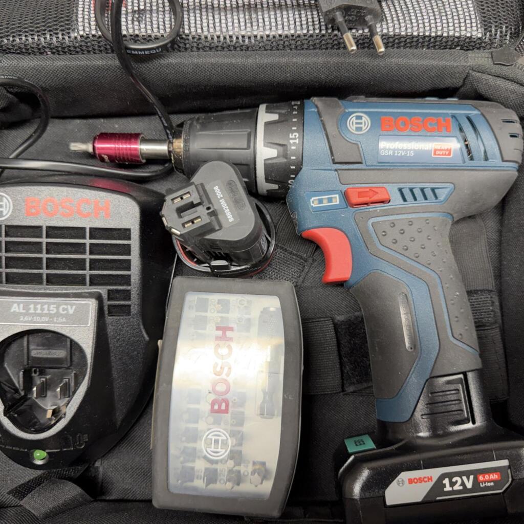 Visseuse de petite taille idéale pour le montage des meubles loué avec deux batteries un chargeur et une boîte d embouts