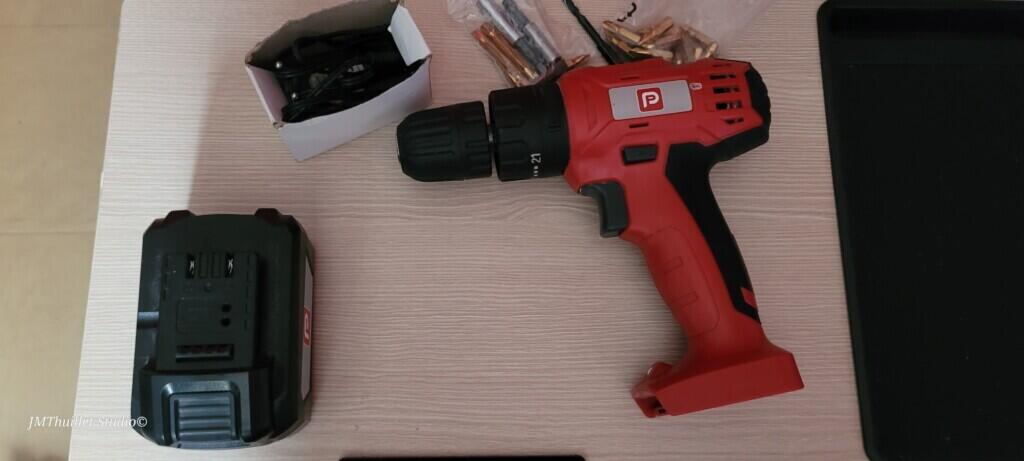 Avec chargeur de batterie+1 batterie. Divers embouts. Capacité mandrin diam 10 MM. Led incorporer.